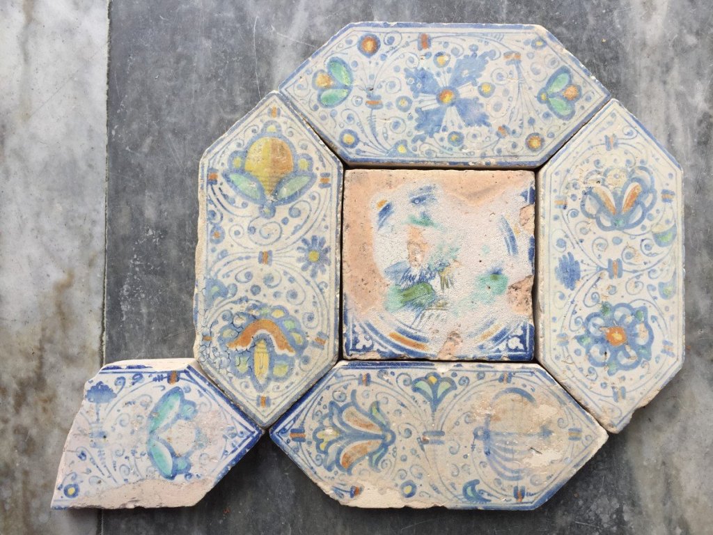 Masséot Abaquesne, installé à Rouen, produit des vases de pharmacie et des carreaux de pavement, notamment pour les châteaux d’Écouen et de la Bâtie-d’Urfé.