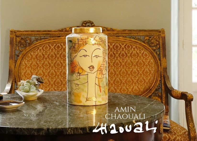 Urne en céramique et feuilles d’or, par Amin Chaouali